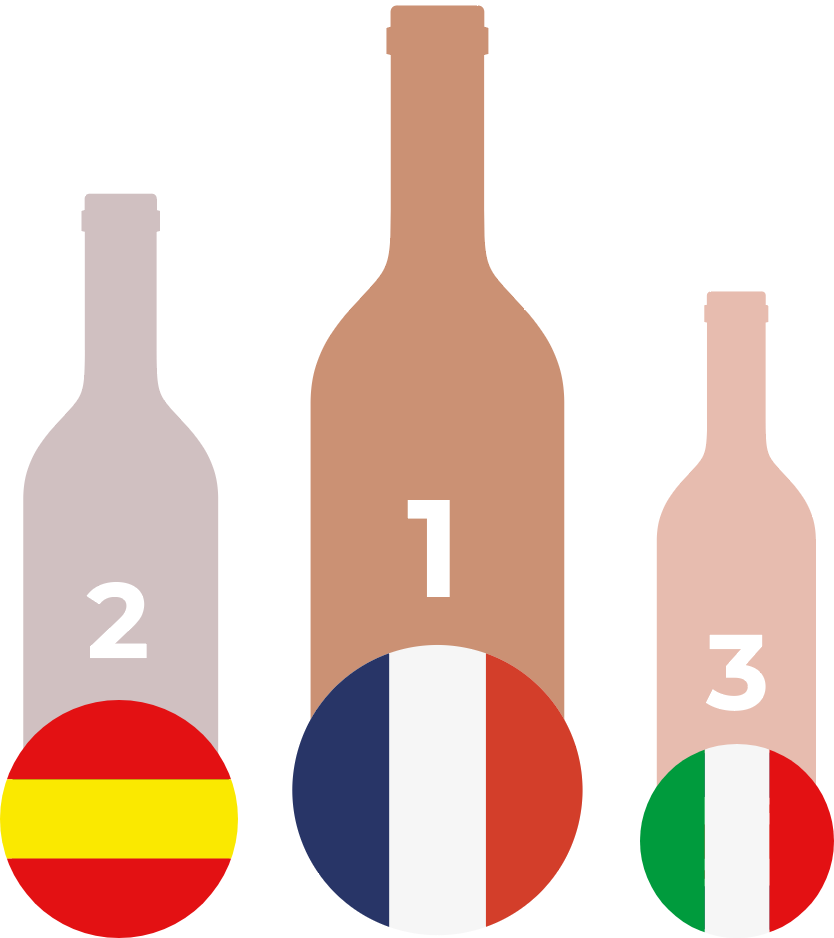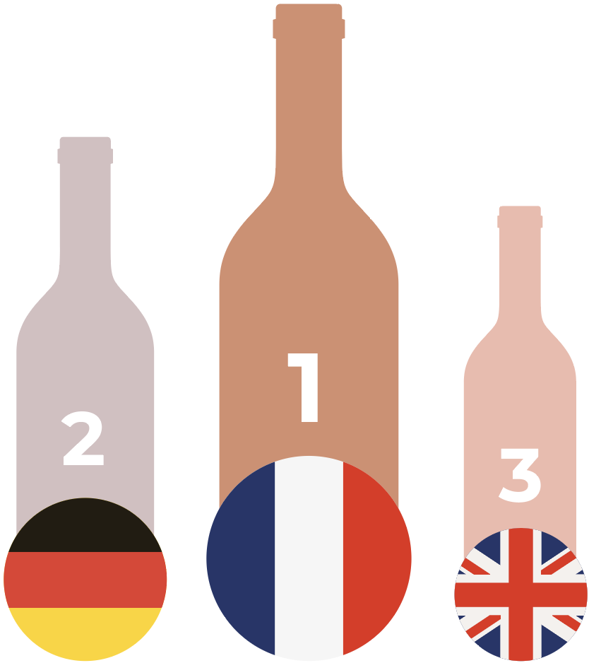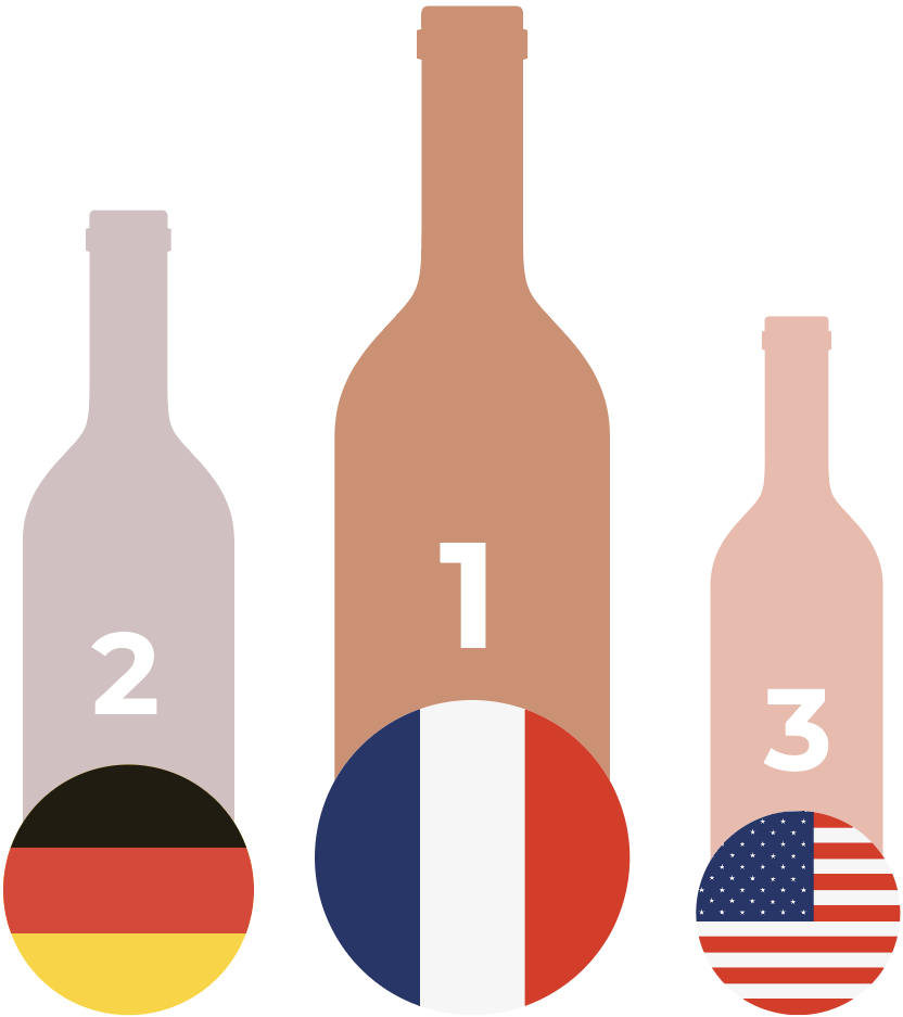 Malgré la baisse structurelle de sa consommation intérieure, la France demeure un leader incontournable : 1er producteur, 1er consommateur, 1er exportateur en valeur (2e en volume) et 1er importateur en volume (principalement de rosés espagnols d'entrée de gamme). À noter également qu'en 2023, les États-Unis semblent être passés d'exportateur à importateur net de vins rosés, car la baisse de leurs exportations et de leur production nationale ne suffit plus à satisfaire la demande intérieure.